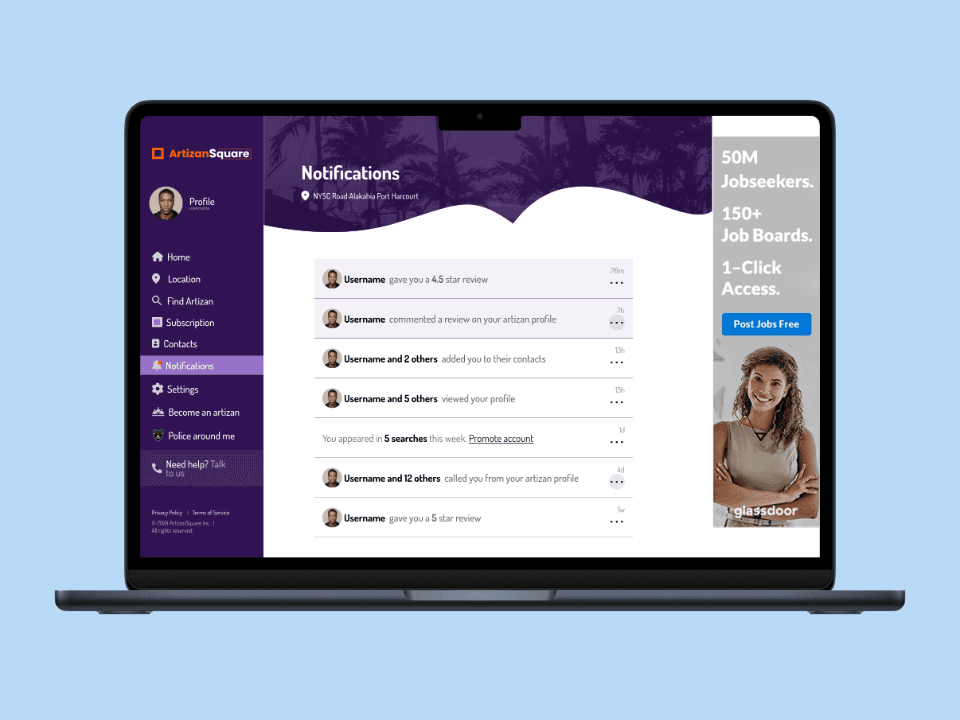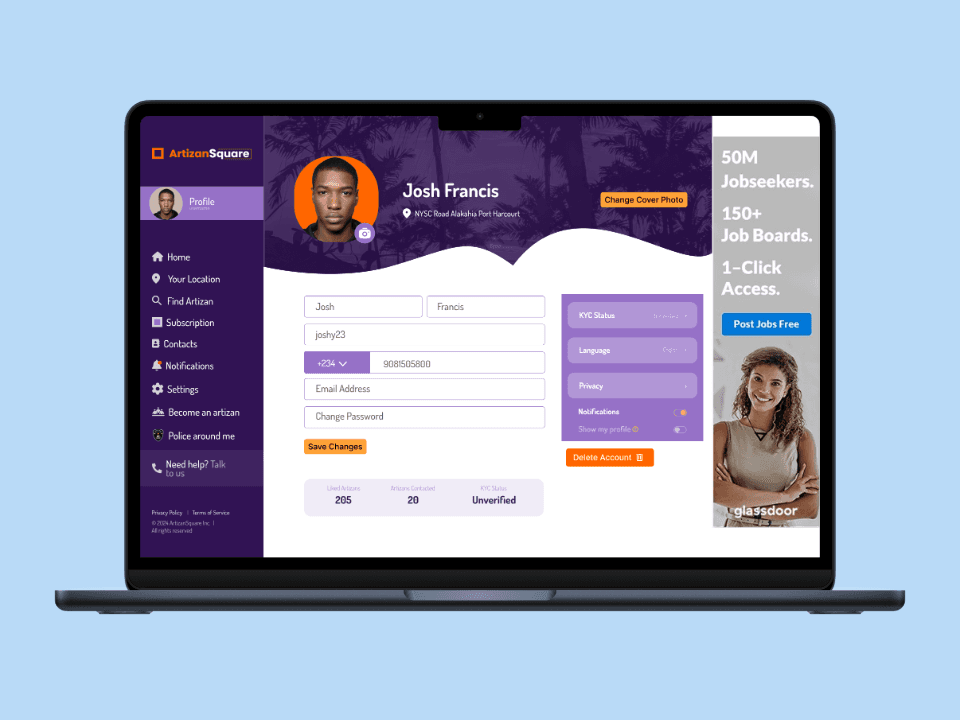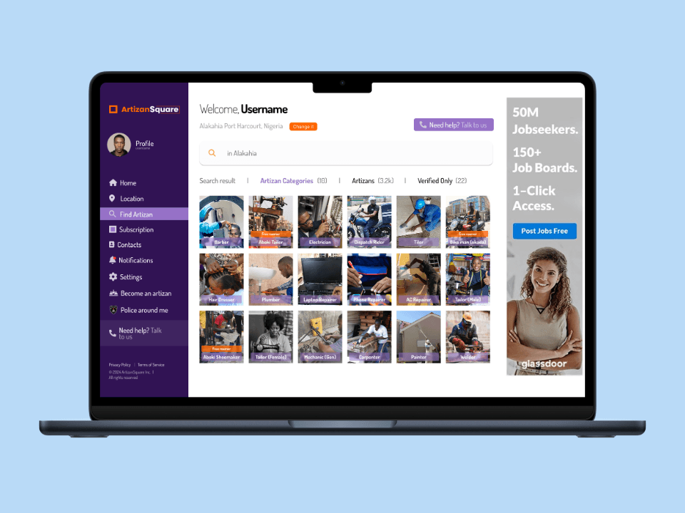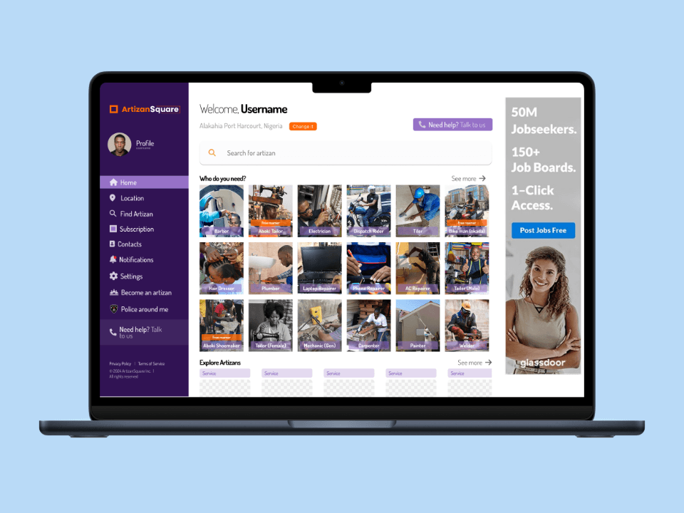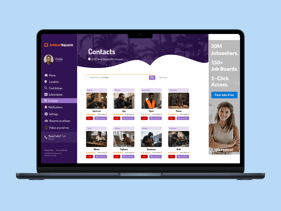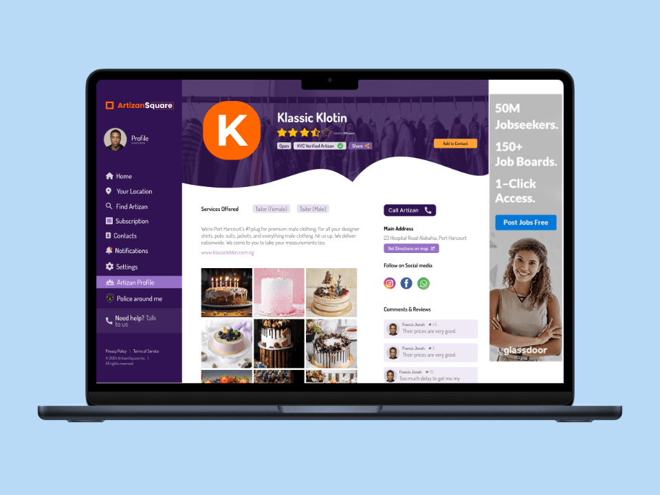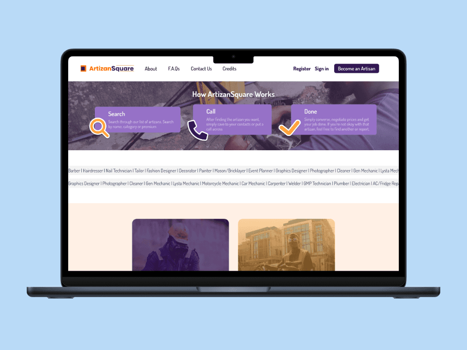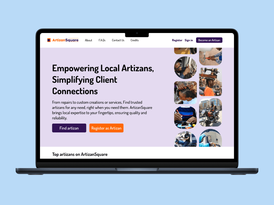 The ArtizanSquare website successfully bridges the gap between artisans and clients by providing a streamlined and professional digital platform. With a clean design and user-friendly functionality, it enhances visibility for artisans while offering customers a trusted space to hire skilled professionals.