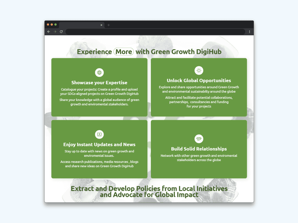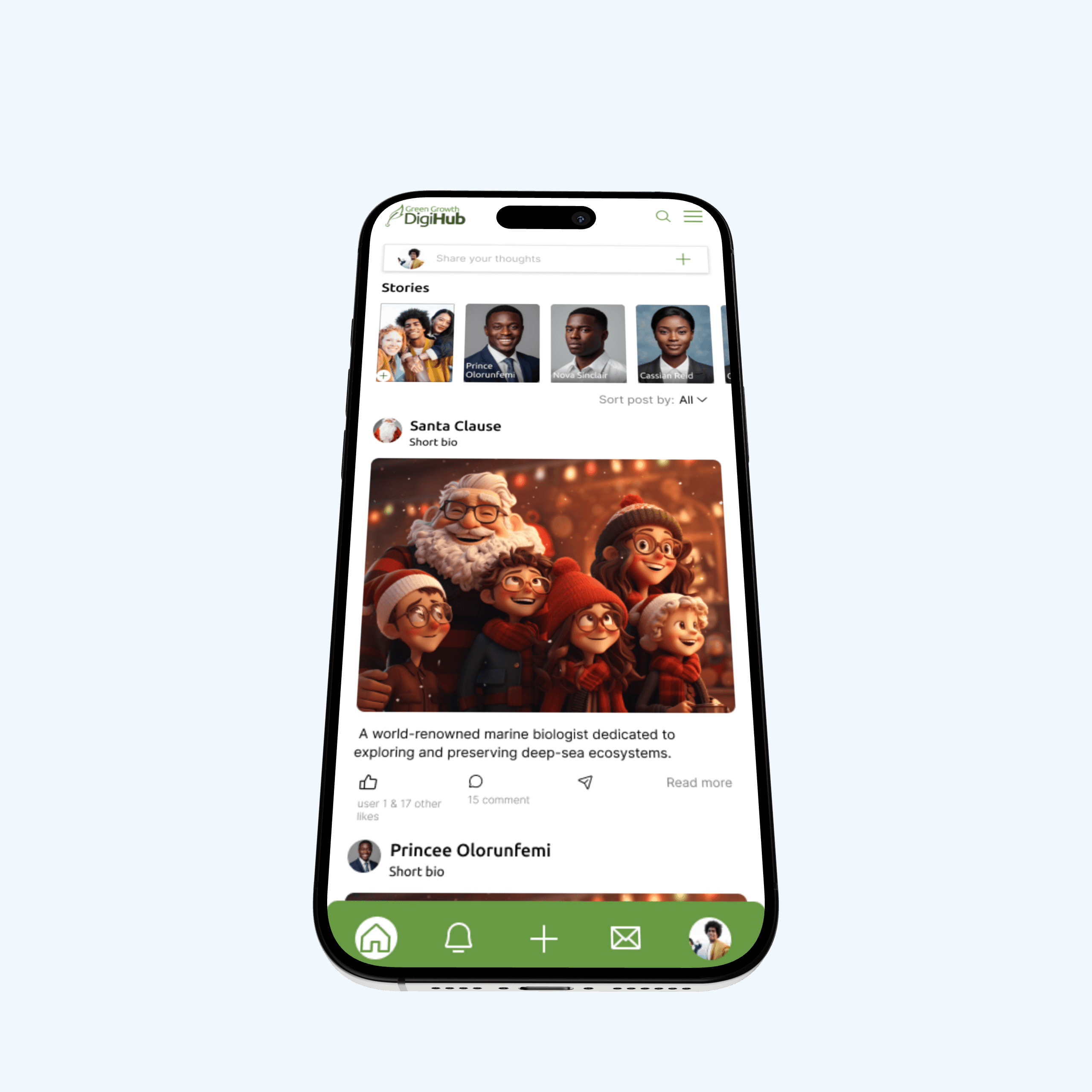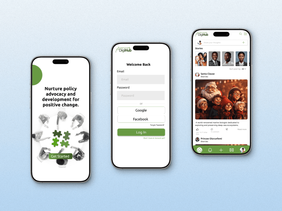 DigiHub is a social media platform designed to connect people and share knowledge on green growth in Africa. It brings together stakeholders, facilitates policy discussions, and highlights green projects for investment and collaboration
